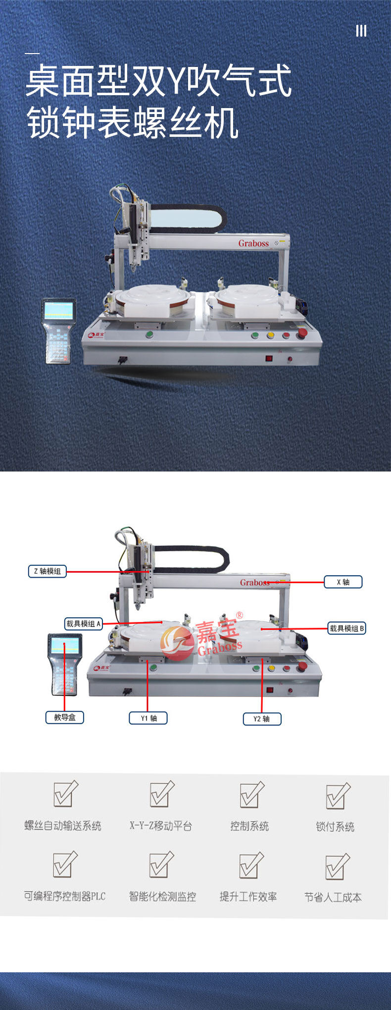 产品分类:桌面型锁螺丝机 产品规格:800x1150x800mm 产品型号:GB-YC8464